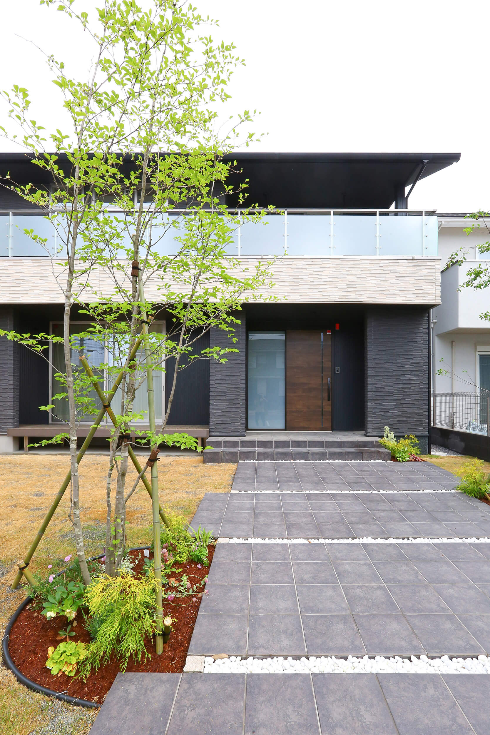 スタイリッシュさを追求した、誰もが憧れるようなモダンな外観。バルコニーを軒代わりに雨風を凌げるよう工夫することで、デザイン性と実用性を見事に両立しています。