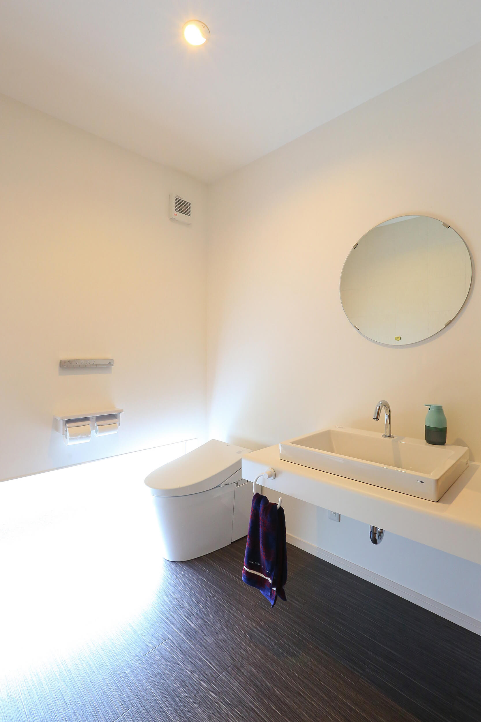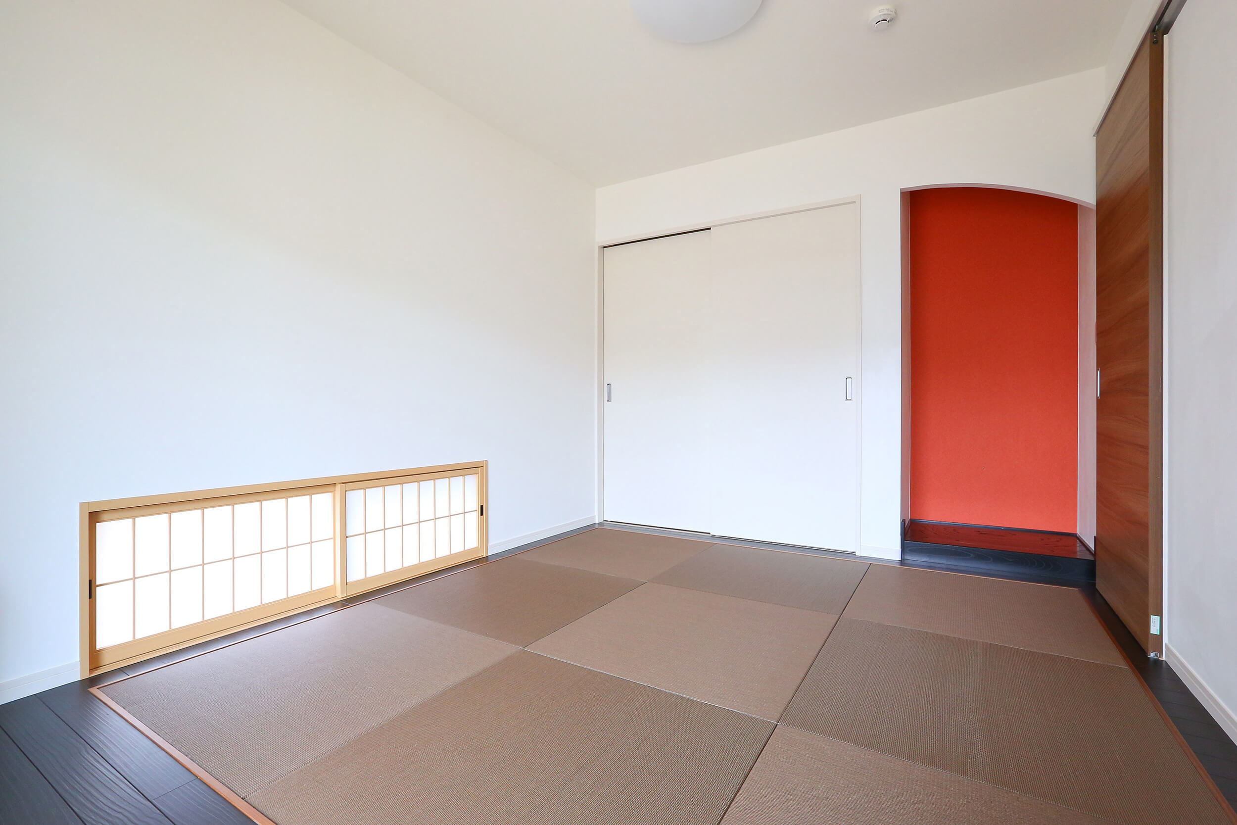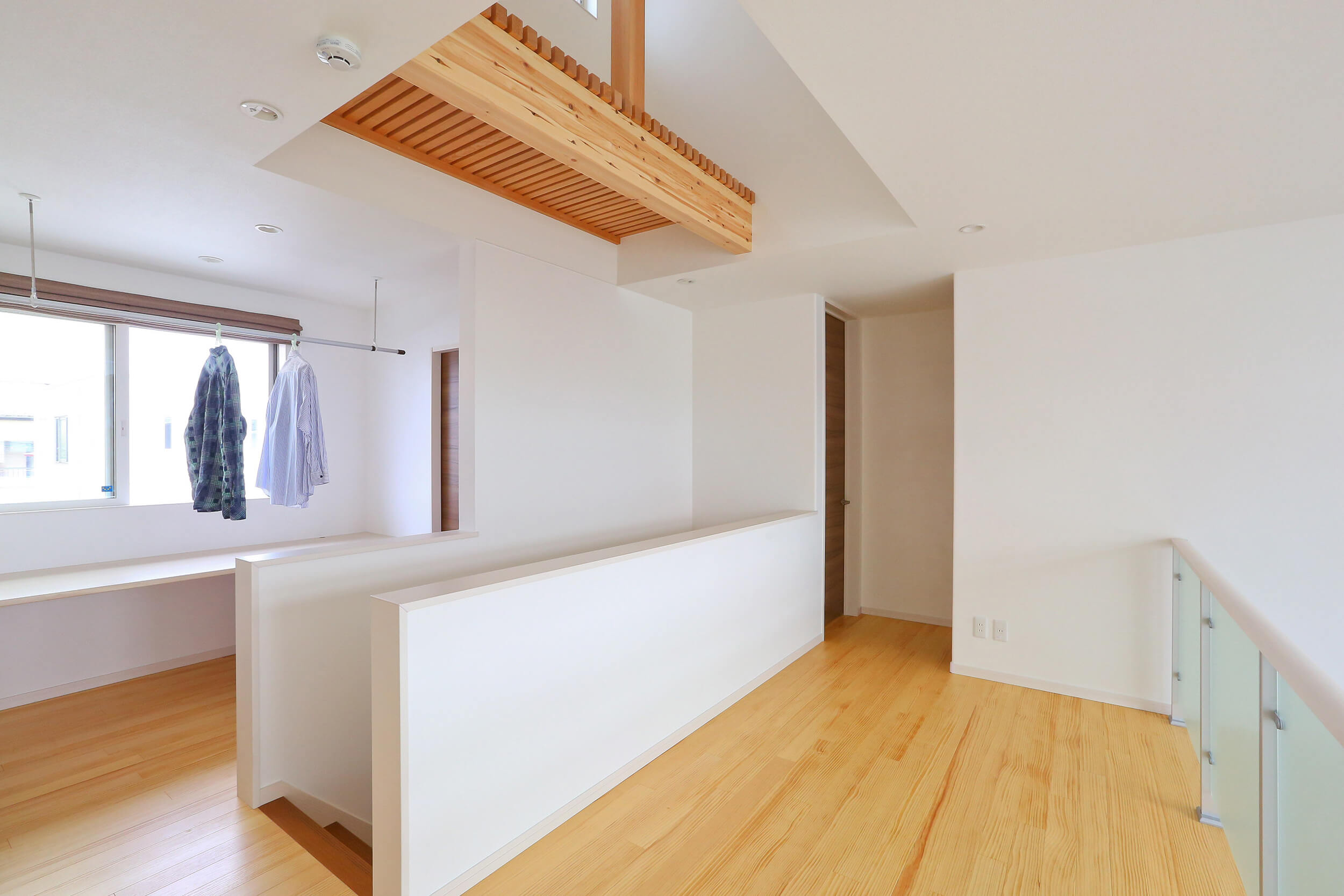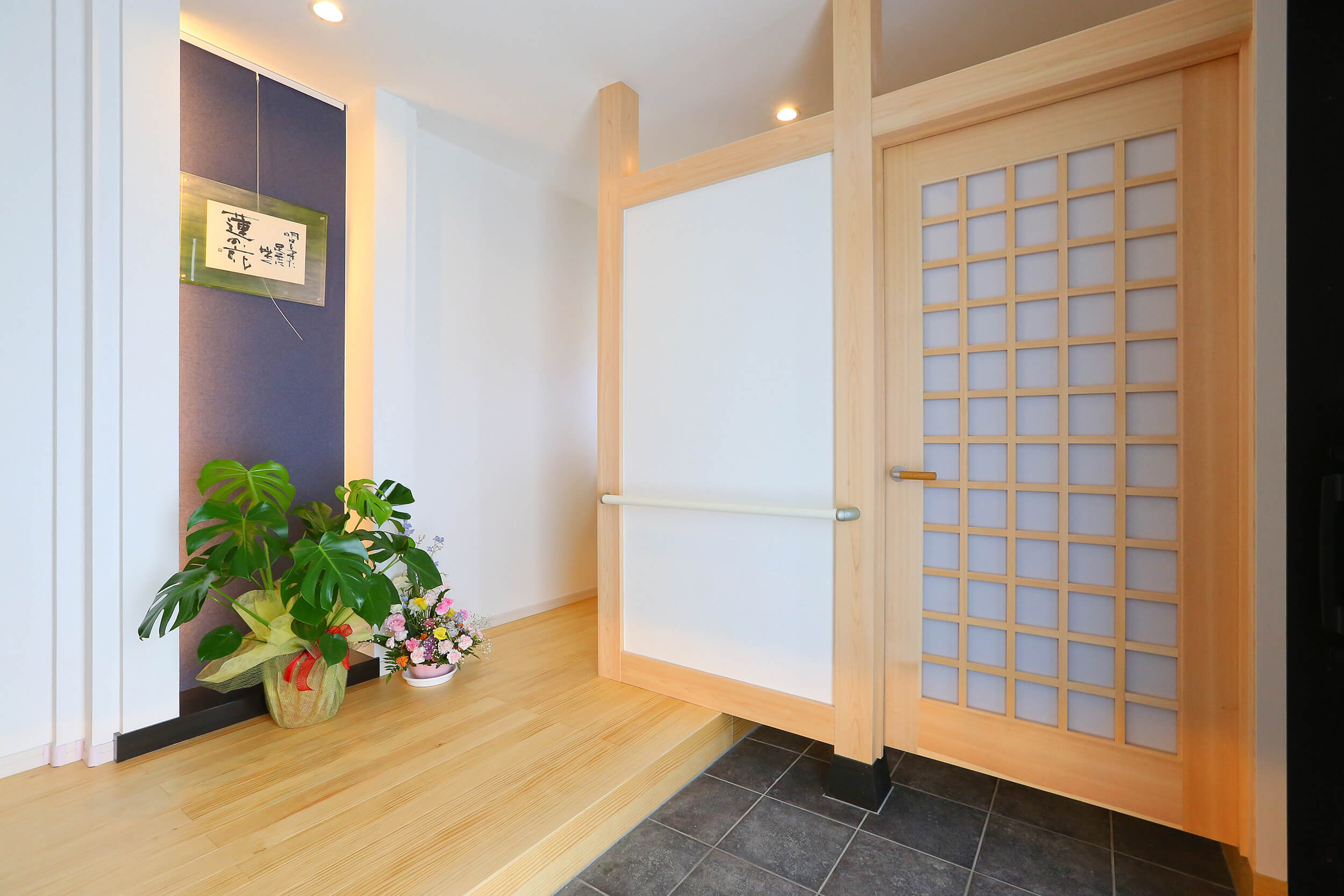 和のテイストを表現した、たっぷり収納が嬉しい玄関土間に、奥様が趣味の書道を楽しむための和室。そしてランドリースペースと家事コーナーを兼ねた2階ホールは天井高を活かして愛猫のためのキャットウォークを設けるなど、ご家族の様々な想いが詰まったオンリーワンのお住まいです。
